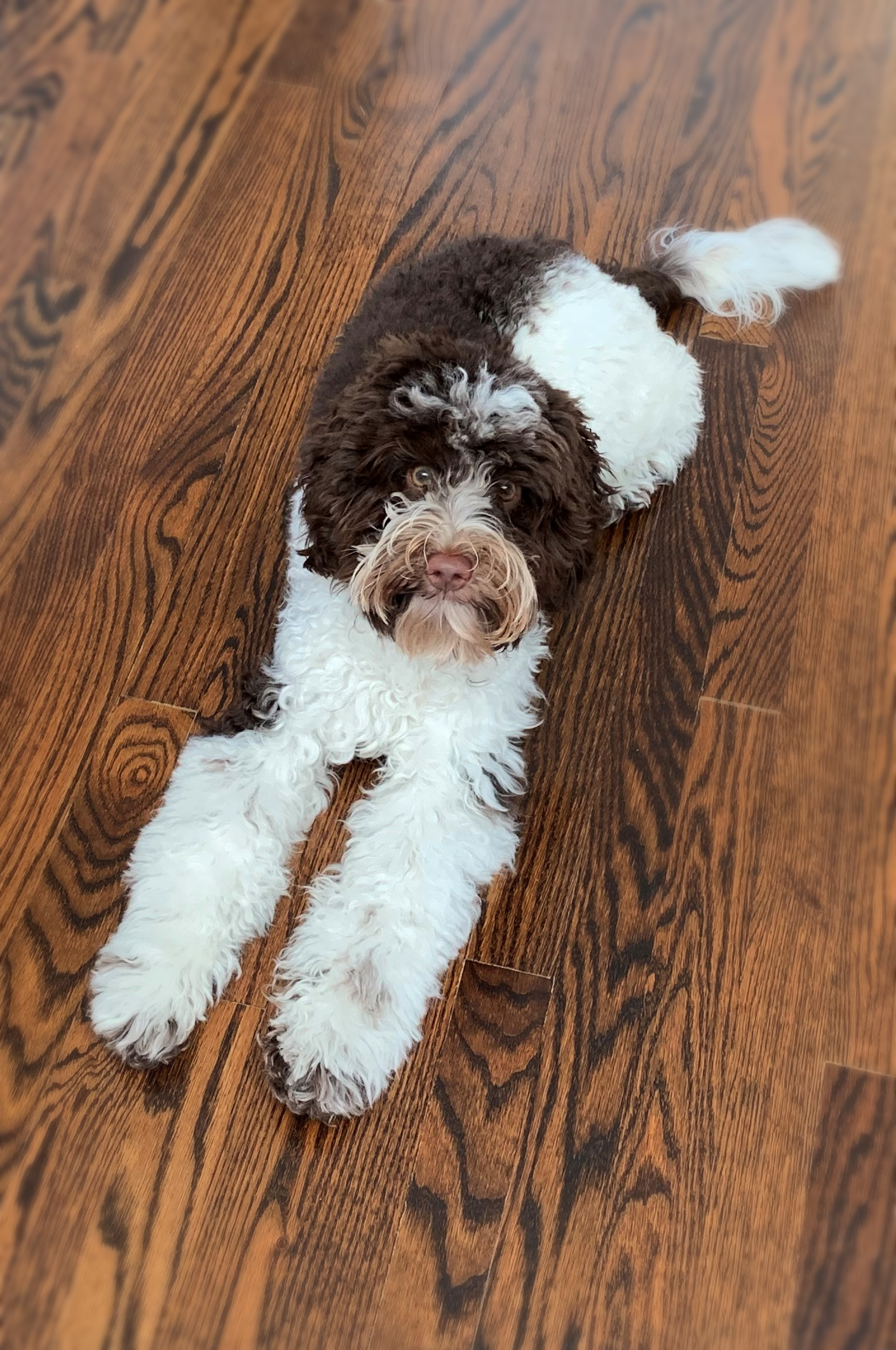 Agnes is my beloved Bluevale Meadows puppy and the first puppy born to Lily and Vincenzo. I have had her now for five months and she has been an amazing addition to our family. Agnes is so incredibly smart and such a goof ball. She has the sweetest disposition and gives some of the best doggy snuggles. I would recommend this breed to anyone looking to add a four-legged companion to their family.